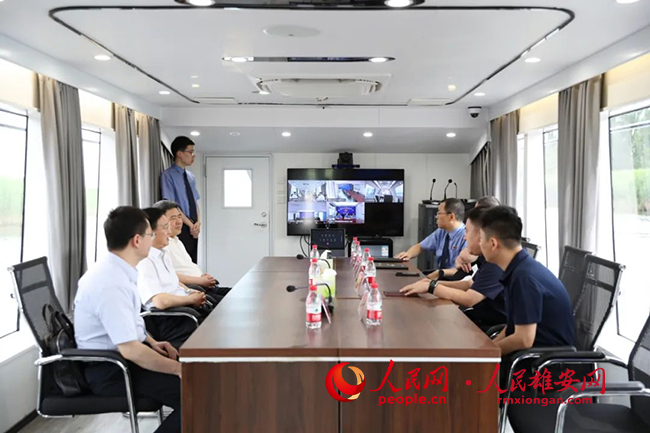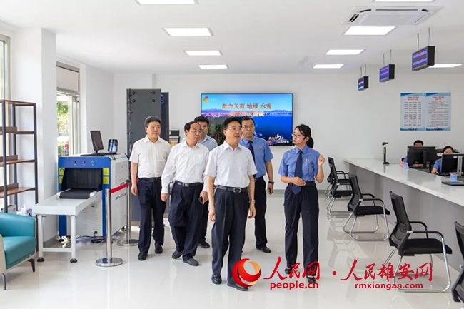 在雄安站(昝崗片區)、雄安規劃展示中心、雄安城際站及國貿中心項目建設現場,童建明詳細了解了雄安新區整體規劃建設、北京非首都功能疏解、高新技術產業集聚發展以及檢察機關在雄安新區建設發展一線履職情況。他強調,檢察機關要緊緊圍繞雄安新區建設發展特別是承接北京非首都功能疏解中的法治需求,靠前一步、主動作為,將檢察職能延伸到建設一線,以更優檢察服務助力雄安新區打造市場化、法治化、國際化一流營商環境。童建明非常關心白洋淀生態環境治理情況,通過水上檢察室和移動檢察室實地考察了新區檢察機關助力白洋淀生態環境保護相關情況,通過視頻與省檢察院、新區分院公益訴訟部門干警通話,勉勵大家要依法創新、能動履職,為白洋淀生態環境保護作出更大檢察貢獻。