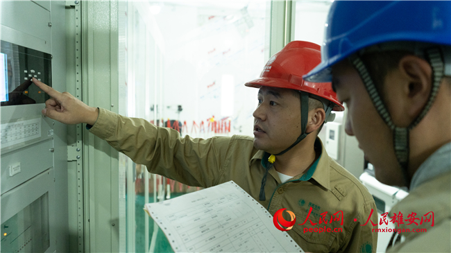 工作人員在開關站現場進行操作。國網雄安供電公司供圖