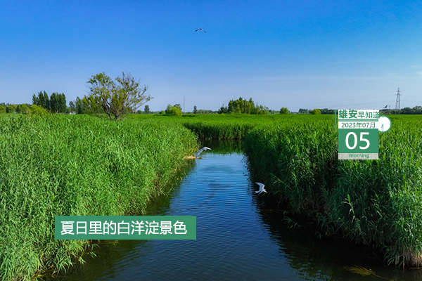 今天是2023年7月5日,星期三,天氣晴轉多云 ,21~38℃。在封面和大家見面的是夏日里的白洋淀景色。