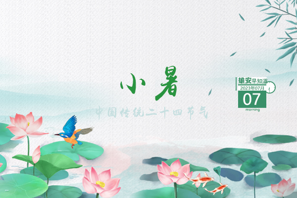 今天是2023年7月7日,星期五,天氣晴 ,23~38℃。今天是我國“二十四節氣”中的“小暑”,從此開始進入伏天。民間有“小暑大暑,上蒸下煮”之說,我國北方地區有頭伏吃餃子的傳統,以緩解伏日食欲不振的情況。