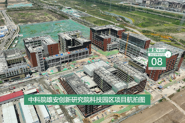 今天是2023年7月8日,星期六,天氣多云 ,24~37℃。在封面和大家見面的是中科院雄安創新研究院科技園區項目航拍圖。