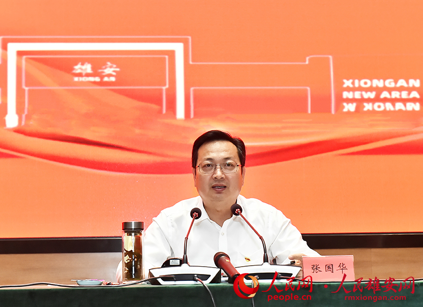 張國華強調,要深刻領悟習近平新時代中國特色社會主義思想的思想真理和實踐偉力,堅持原原本本學、全面系統學、融會貫通學,不斷增強政治判斷力、政治領悟力、政治執行力,以感恩之心堅定不移沿著總書記指引的方向奮勇前進,切實把黨的創新理論轉化為堅定理想、錘煉黨性和指導實踐、推動工作的生動實踐。要深入貫徹落實習近平總書記視察雄安新區重要講話精神,深刻領悟黨中央規劃建設雄安新區重大現實意義,堅持建設、管理、疏解發展全方位統籌,牢牢抓住雄安新區重大機遇,奮力擔起解決疏解對象利益關切、標志性疏解項目落地、城市建設發展、創造雄安質量、優化營商環境、科技發展、高端高新產業發展、打造優美生態、創新城市治理、干部隊伍建設10大任務,把解決實際問題作為推動工作落實的突破口,以改革創新不斷開創雄安新區新局面。要積極謀劃開展學習貫徹習近平新時代中國特色社會主義思想主題教育,扎實開展“思想大解放、能力大提升、作風大轉變、工作大落實”大討論,真正做到以學鑄魂、以學增智、以學正風、以學促干,以主題教育實效推動新區高質量發展,進一步解放思想、開拓創新、敢于擔當、團結奮斗,奮力創造新時代新奇跡,不斷展現現代化新氣象。