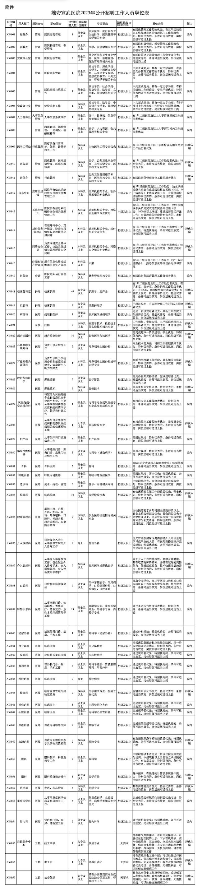 附:雄安宣武醫院2023年公開招聘工作人員職位表