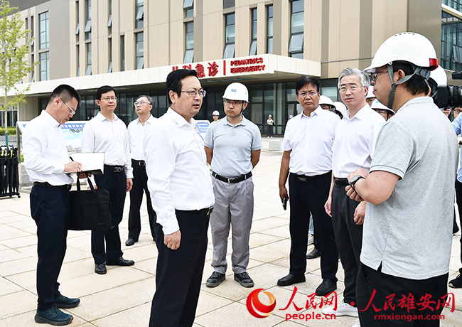張國華強調,“三校一院”是雄安新區啟動區首批建設的公共服務與民生保障項目,對服務北京非首都功能疏解,推進基本公共服務均等化,促進區域協同發展具有重要意義。新區相關部門和各參建單位要緊盯時間節點,倒排工期、掛圖作戰,對學校、醫院反饋的需求事項實行清單化管理、工程化推進、責任化落實,以更加奮發有為的精神狀態推進各項工作,確保項目如期投用。要強力推進周邊市政基礎設施和園林景觀項目收邊收口,整治提升周邊環境,完善道路交通安全管理設施,保障好水電氣訊暖供應,把雄安質量的要求落到實處。提升運營管理水平和服務能力是一項重要課題,學校要在樓梯、走廊、操場等重點場所張貼安全標識,依據招生數量保障好食堂就餐,提前謀劃好疏導上學放學車流人流的交通方案,營造文明和諧校園環境。醫院要研究健全標準化的管理服務體系和管理制度,充分用好政策紅利,進一步整合創新資源,加大高層次人才引育力度,做好一二期項目建設和功能銜接,優化門診、病房等醫療服務設施布局和配置,提升醫療服務水平。新區各相關部門要加強統籌協調和部門聯動,層層壓實責任,跟進解決難點堵點問題,齊心協力推動項目建設取得新進展。