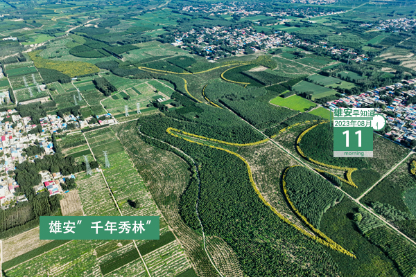 今天是2023年8月11日,星期五,天氣多云轉雷陣雨,25℃~33℃。在封面和大家見面的是雄安“千年秀林”。