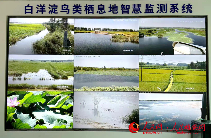 白洋淀鳥類棲息地指揮監測系統大屏幕。安新縣自然資源局供圖
