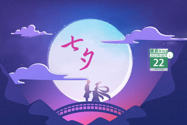 今天是2023年8月22日,星期二,天氣晴,21℃~31℃。今天是七夕,又稱七巧節、七姐節、女兒節。七夕被賦予了“牛郎織女”的美麗愛情傳說,使其成為了象征愛情的節日,從而被認為是中國最具浪漫色彩的傳統節日。