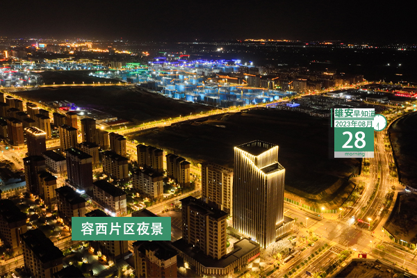 今天是2023年8月28日,星期一,天氣晴,18℃~29℃。在封面和大家見面的是雄安容西片區夜景。