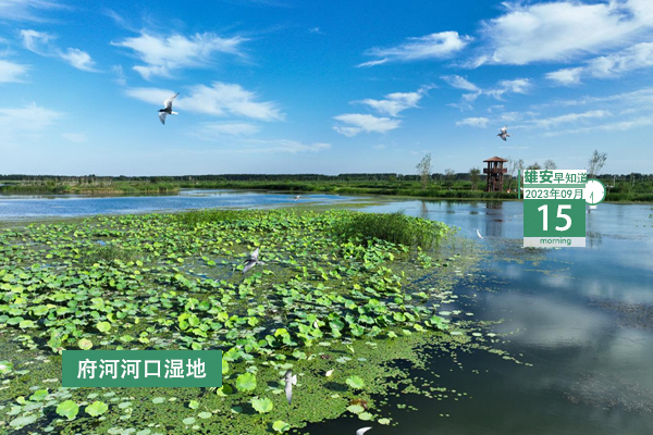 今天是2023年9月15日,星期五,天氣晴轉多云,17℃~30℃。在封面和大家見面的是府河河口濕地。