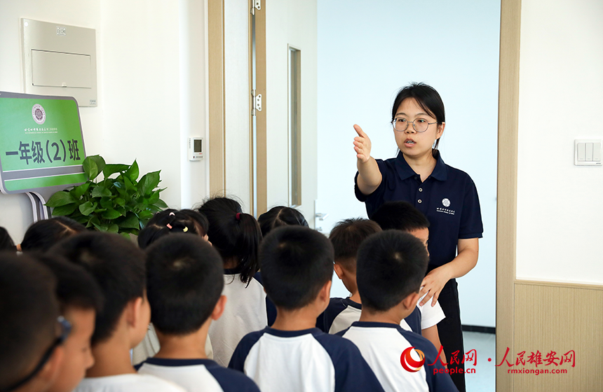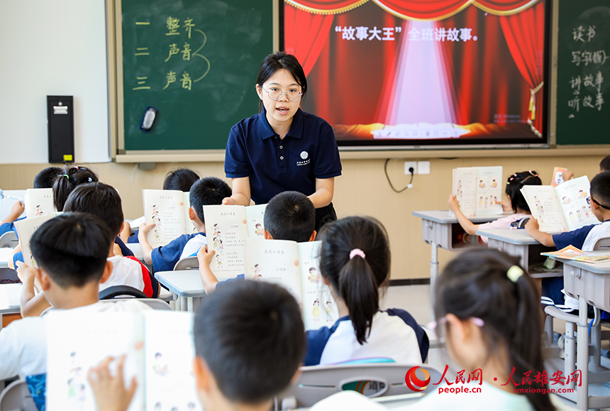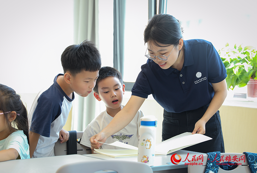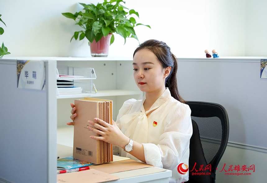 人民網雄安9月10日電 (記者宋燁文)紅墻、槐樹、格子間、小圓臉……在雄安史家胡同小學2樓的教師辦公室,正在批改作業的畢萌“水靈靈”地出現在記者面前。