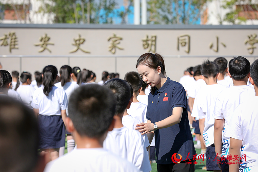 課間操期間,畢萌正在對學生進行指導。人民網記者 宋燁文攝