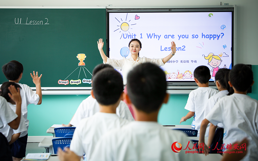 1998年出生的畢萌是雄安新區容城縣人,2021年大學畢業后回到家鄉工作,現在是雄安史家胡同小學3、4年級的一名英語老師。