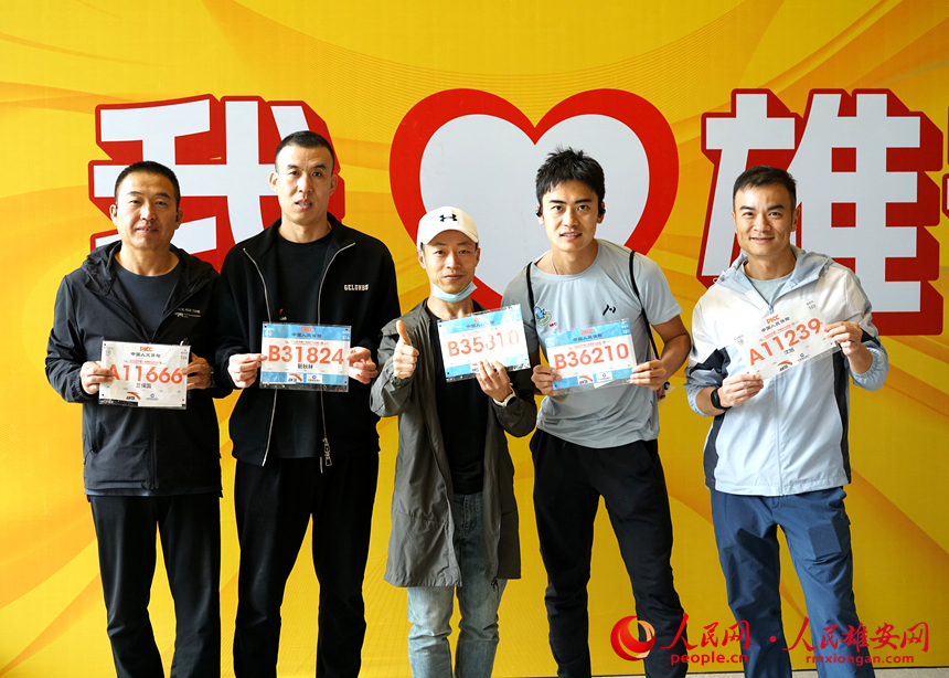 參與2025雄安馬拉松的跑者合影。人民網記者 劉師豪攝